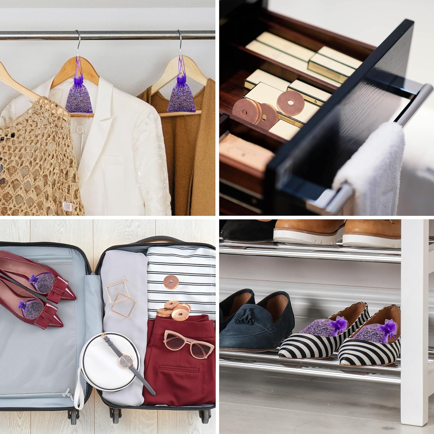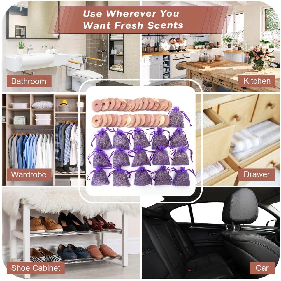 - Cedar rings and lavender flower sachets can be hung and placed perfectly in clothes, drawers, lockers, shoe cabinets or any household storage system.