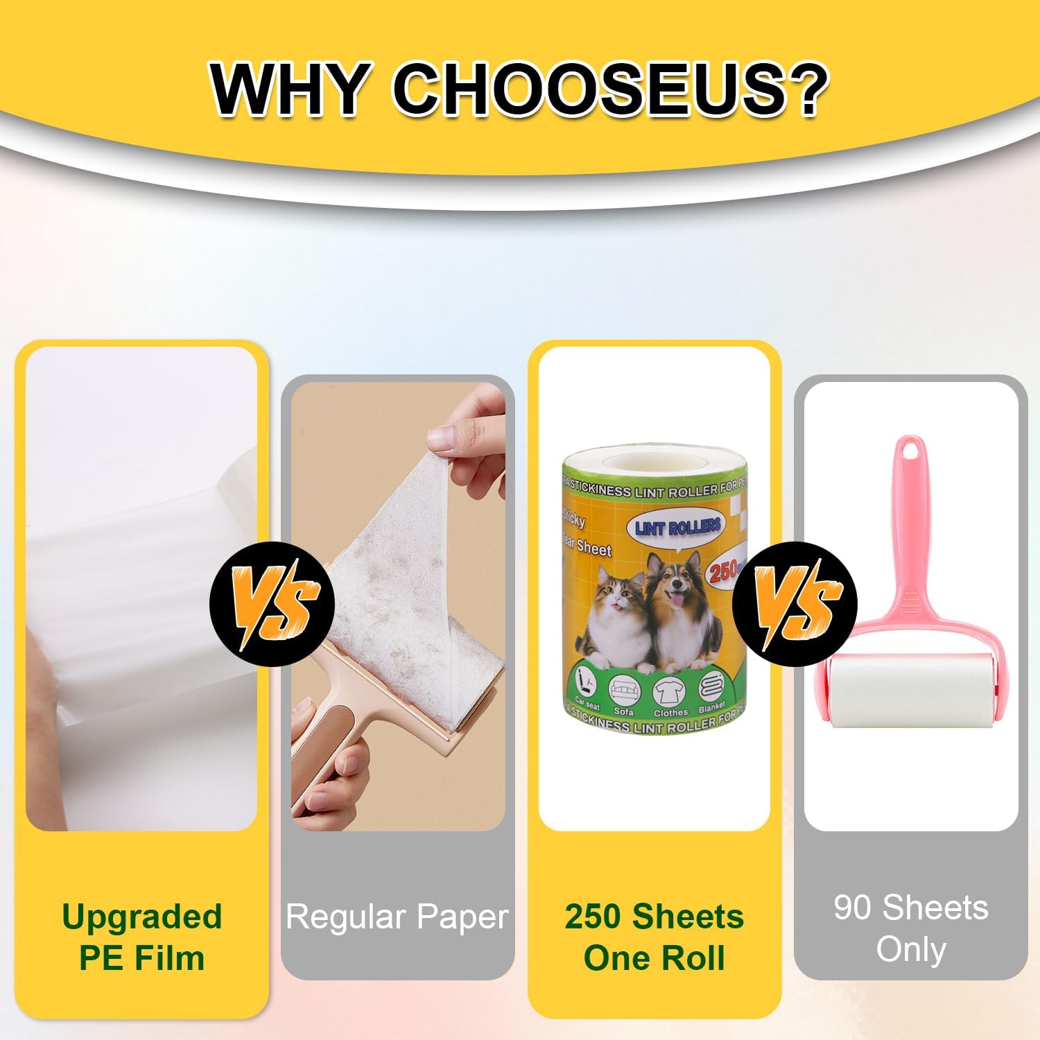 - Multi use: this pack of lint rollers will serve as a perfect assistant in your home, car and office. It can tackle everything from curtains to car seats, and anything in between. Effective for clothes, furniture, sofas, carpets, bed sheets, etc. Does your pet's hair cling to furniture and clothes even though you brush it every day? Our dog & cat hair lint roller will finally help you deal with the fur situation!